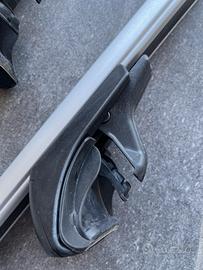Prodotto per automobili con rails barre sul tetto. Le Barre Portatutto Helio Rail Evos RA L sono un set completo di barre in alluminio progettate per offrire robustezza, sicurezza e praticità per il trasporto dei carichi sul tuo veicolo. Queste barre si distinguono per il loro elegante profilo tubolare realizzato in lega di alluminio anodizzato, che non solo conferisce un aspetto moderno e raffinato, ma garantisce anche una resistenza eccezionale alla corrosione e una lunga durata. La canalina superiore è predisposta per l`inserimento dei connettori rapidi "T", semplificando l`installazione di vari accessori. La base di appoggio del carico è rivestita in gomma, fornendo una maggiore protezione e stabilità durante il trasporto. Le barre sono dotate di serratura antifurto, assicurando la massima sicurezza contro i furti. Inoltre, sono pre-assemblate e pronte per un montaggio ultrarapido, risparmiando tempo e fatica.