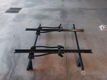 Barre portatutto con due portabiciclette. come nuove erano state usate, poco, su di una Golf sesta serie ma sono adattabili ancge ad altre auto marca Peruzzo cm 140x130.
