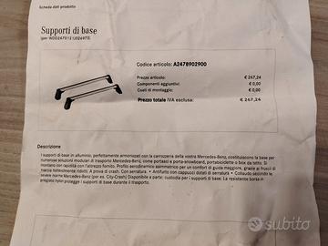 Barre porta tutto originali Mercedes per Mercedes Classe B del 2019 (modello per versione con tettuccio apribile). Usate 5-6 volte. In vendita per avvenuto cambio automobile. Non spedisco
