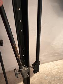 Struttura solida, complete di staffe di fissaggio e registri, per trasporto di biciclette sul tetto dell’auto.