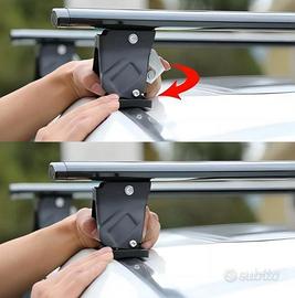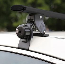 Vendo barre da tetto portapacchi universali per auto Omologate adatte per auto che NON HANNO railing o barre longitudinali di serie ma adatte ad auto con tetto LISCIO. Barre con doppia chiave di sicurezza, comprese di kit di montaggio e istruzioni in italiano.