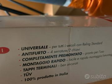 Barre portapacchi universali per auto con reling (barre tetto) universali cm 116 – 127 in ottime condizioni (Si fissano facilmente a qualsiasi tipo di barre portapacchi) €70