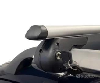 Coppia di barre portapacchi in alluminio universali per auto con railing longitudinali lunghezza 120 cm.
