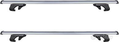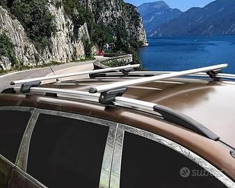 Barre portatutto universali in alluminio omologate per auto con railing longitudinale già premontato all'auto non attaccati completamente al tetto, in alluminio con serratura e regolatore nella parte posteriore