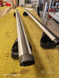 Barre portapacchi Thule originali per Suzuki Grand Vitara (2005–2015). Complete di supporti, pronte al montaggio. Condizioni buone, perfettamente funzionanti, normali segni di utilizzo sulla gomma superiore. Ideali per box tetto, bici, sci, ecc. Prezzo: 170 € trattabili