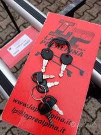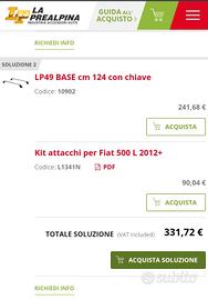 Barre la prealpina 124 mm attualmente monta l'attacco per Fiat 500 L con chiusura e chiavi antifurto.