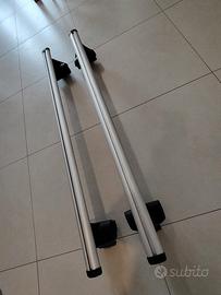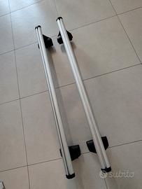 Vendo coppia di barre portatutto in alluminio 125cm con binario di scorrimento in ottimo stato prodotte dalla Thule per la Norauto (non ci credevo nemmeno io, ma sono le stesse identiche; quelle che avevo per l'auto precedente erano Thule ed ho avuto quindi modo di confrontarle: a parte la lunghezza diversa per ovvi motivi altrimenti non le cambiavo). Al momento montano gli attacchi e i piedini per Toyota Auris ma posso vendere anche solo le barre. Il prezzo totale è 70 euro. Con inserzione a parte vendo coppia portabici Thule in alluminio con chiavi oltre a portasci scorrevoli con chiavi prodotte dalla Thule per Norauto (identici anche questi).