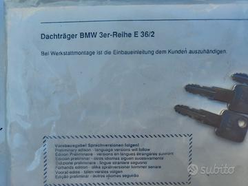 vendo barre portatutto originali per bmw e36 coupé nuove, fondo di magazzino. vendo causa passaggio ad altra vettura. sono adatte solo al modello coupé, non compatibili con berlina. completi di chiavi e istruzioni di installazione originali.