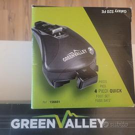 2Barre portatutto+ 4piedi quick della Green Valley. Usate per un unico viaggio, come nuove. Adatte a tutte le auto con barre longitudinali integrate (rails). Facile montaggio. Quattro piedi (o ganci) muniti di antifurto con chiave.