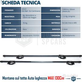 Barre Portatutto Portabagagli in ACCIAIO Nero per FIAT | Originali GOODYEAR | Sviluppate Specificamente per Auto con Corrimano Longitudinale Prodotto dal Design Curato che non Pregiudica l'Estetica o la Sportività del Veicolo sul Quale Viene Installato. - Eccellenza dei Materiali ""Dettagli/Tatto"" - Aereodinamica e Resistenza Alle Intemperie Testata - Installazione FACILE (Con una sola Chiave Inglese) - Sistema di chiusura ad Avvitamento SONO LA BASE PER IL MONTAGGIO DI PRATICHE SOVRASTRUTTURE: - Portabici - Box Portapacchi - Portasci - PortaSnowboard - Portakayak COMPATIBILITÀ: CON CORRIMANO ALTI - FIAT FREEMONT (11-19) - FIAT IDEA (03-12) - FIAT CROMA (194) Station Wagon 2005-2011 - FIAT PANDA I 141 (83-02) - FIAT PANDA II 169 4X4 (2003-2011) - FIAT PANDA II 169 CROSS (2005-2013) - FIAT PANDA 3 (312,319) CROSS - TRUSSARDI (2014>) - FIAT SEDICI (05-14) - FIAT UNO STATION WAGON (84-98) - FIAT PALIO Station Wagon (96-00) - FIAT STILO (192) Multiwagon, Uproad (02-07) - FIAT QUBO MPV (2008>) - FIAT FIORINO III (2007>) - FIAT DOBLÒ I Malibu MPV (2000-2009) MONTAGGIO: - Posizionare le barre Portatutto facendole agganciare ai Corrimani Longitudinali - Una volta messe in posizione Stringere con Forza la Vite di Serraggio DETTAGLI TECNICI: - Applicazione: Su Corrimano Longitudinali Tetto Auto - Bloccaggio: Ad Avvitamento - Materiale: Acciaio - Colore: Nero - Finitura: Traslucida - Peso: 1,525Kg (Singola) - Dimensioni: 133Cm x 2,4Cm x 3,3Cm - Potenziale di carico: 70Kg - Confezionamento: Box Cartone Originale - Specifiche tecniche: Alta resistenza allo Schiacciamento e Graffi PER INFO CONTATTARE AL 3927091031 ANCHE LINEA WhatsApp OPPURE VIA E-MAIL: rtautoitalia2018@libero.it CONSEGNA: - Effettuiamo Spedizioni 24-48H in TUTTA ITALIA - Ritiro in Sede con possibilità di visionare il Prodotto - Vendiamo solo Articoli Nuovi PAGAMENTI: - PayPal - Con Carta - Bonifico Bancario - Alla Consegna con Contrassegno