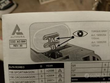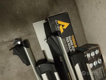N° 2 barre portatutto auto per railing e porta sci-snowbiard. Usato solo 2 volte. Compreso di scatole e chiavi. Ditta Althura - mod. Torque gray 110cm - art.1855254 (verificare modelli compatibili)