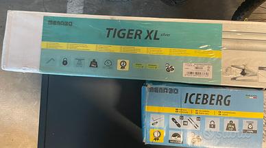 Barre portatutto NUOVE (scatola mai aperta) MENABO Tiger XL Silver per vari tipi di auto con railing aperti e integrati · Dotato di sistema antifurto · Leggere, pratiche e sicure .