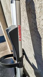 Vendo come da titolo barre portatutto Fabbri e 2 portabici da tetto Fabbri in ottimo stato, usate una sola volta. Utilizzate su una Honda jazz Crosstar ma essendo le barre allargabili da 85 a 122 cm possono essere utilizzate su moltissime vetture, carico max 75kg, veloci da montare, costruite in alluminio nere. I due portabici Fabbri in alluminio sono antifurto con chiave (Allu3000 new)