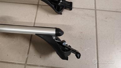 Barre portatutto Green Valley usate pochissimo. Vendo per cambio auto. Le barre sono corredate di fissaggi per i binari installati sul tetto auto (vedi foto)