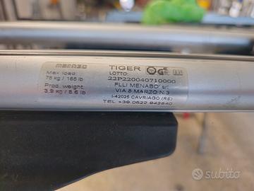 Vendo portapacchi in alluminio F.lli Menabò, modello Tiger, in buone condizioni. Ottime come base per box da tetto, portabici o portasci. Materiale: Alluminio (leggere e aerodinamiche) Portata max: 75 kg Montaggio: Universali per auto dotate di corrimano sul tetto (sia classici rialzati che integrati/attaccati alla carrozzeria). ⚠️ COME VERIFICARE LA COMPATIBILITÀ: Per avere la certezza al 100% che montino sulla tua vettura, vai sul sito ufficiale menabocaraccessories.com. Cerca il modello "Tiger" o usa il loro configuratore inserendo marca, modello e anno della tua auto. Ritiro a mano o spedizione da concordare