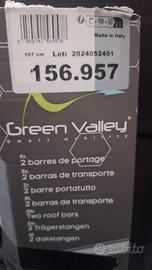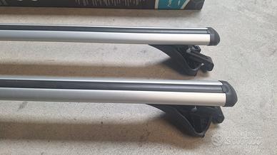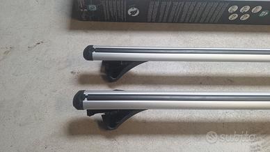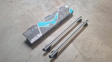 Vendo barre portatutto 107 cm, usate solo nella stagione estiva 2024 su una Ford Focus SW. Sono in alluminio e arrotondate per dare meno resistenza all'aria e quindi non fanno rumore.