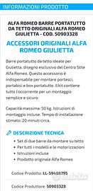 Vendo Barre porta tutto originali Alfaromeo, acquistate per Giulietta ma mai montate in quanto ho venduto l’auto poco dopo.