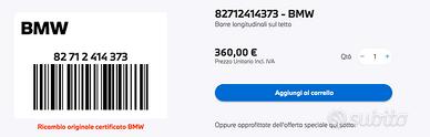 Vendo barre portatutto originali BMW per BMW X3 G01 (2017-2024). Condizioni eccellenti. Originali con fattura. Doppia chiave, libretto istruzioni. Aggancio facile con un click. Visionabili a Bologna. Accessorio originale.