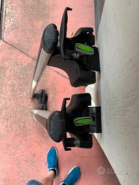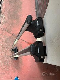 Set 4 piedi per barre porta tutto Thule. Specifico per Seat Ibiza 5 porte 2005-2017 con tetto standard (senza barre longitudinali o punti fissi di aggancio). Da completare con kit di fissaggio Thule. Serrature incluse. Portata: 75 kg. Prezzo 100 €
