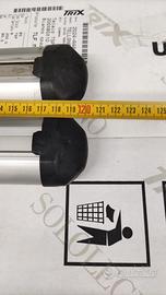 Vendo set di barre portatutto per tetto, in alluminio, profilo aerodinamico anti - fruscio. Con profili in gomma protettivi nuovi. Con 4 serrature con chiavi nuove. Adatte a tutte le auto con rails bassi non sollevati dal tetto. Foto reali, massima serietà.
