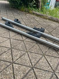 Barre porta tutto usate poco che montavano su una volvo v40cc sono adatte anche per altri modelli che hanno le guide longitudinali rialzate lunghe 135 cm.