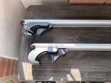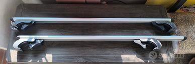 Mod. BRIO made in Italy. Binari in alluminio da 120 cm fino a 90 kg di carico. per veicoli con mancorrenti sul tetto. Perfettamente adattabile a qualsiasi sezione trasversale dei binari del tetto.