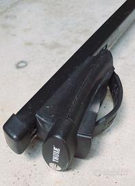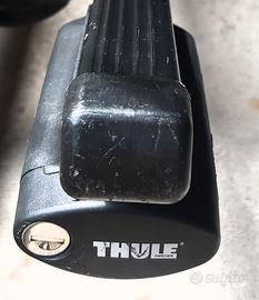 THULE - Set 4 piedi con chiavi e barre portatutto, per barre longitudinali (universale per barre longitudinali di dimensioni comprese tra 20 e 68 mm), precedentemente in uso su AUDI A4 (v. foto). Completo di 2 chiavi, imballo dei piedini e istruzioni di montaggio.