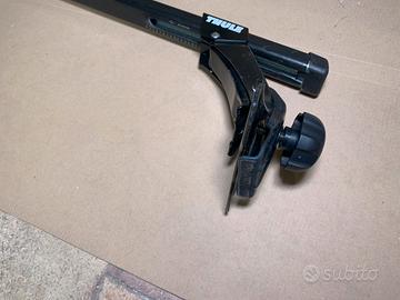 Barre portatutto Thule in acciaio, di colore nero, lunghe circa 122 cm ciascuna. Usate una sola volta con protezioni antigraffio e quindi pari al nuovo. Le ho usate su una Jaguar XJ6 4.0 (nota anche come X300). Adatte sopratutto ad auto con gocciolatoio.