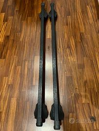 Vendo barre portatutto della Thule usate ma in ottime condizioni. Doppia chiave. Si adattano a molti modelli di autovetture grazie all'attacco mostrato in foto (che si inserisce tra tetto e controtelaio sportello). Regolabile in larghezza grazie alla barra di acciaio interna provvista di vite senza fine con blocco-chiusura a chiave. Molto solide e sicure.
