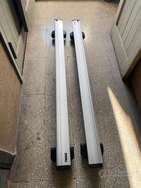 Vendo coppia di barre da tetto in alluminio modello Thule Wing Bar Evo in perfette condizioni, complete di chiave (one key system) e piedi di supporto già montati come da foto.