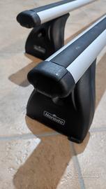 Vendo barre portatutto universali marca Norauto. Hanno un aggancio "rapido" con la brugola, il coperchietto in plastica con apposita chiave, e sono regolabili in larghezza. Erano montate su Renault Kadjar, compatibili con Qashqai, Duster e molte altre ancora. Larghezza barre 123cm.