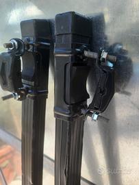 Barre portatutto o portapacchi per auto che hanno sul tetto i mancorrenti cioè le barre longitudinali. La lunghezza totale delle barre è di 114 cm ma la distanza massima dalle zone di appoggio è di 100 cm. Quindi bisogna prendere la misura della distanza tra le due barre longitudinali sul tetto. Se non supera i 100 cm allora vanno bene. Io le ho montate su una citroen c3 Picasso anche se la distanza è superiore al metro. Togliendo i tappi alle estremità e si guadagnano altri 4 cm. Sono di acciaio molto robuste e plastificate. Rimini zona via Flaminia Conca.