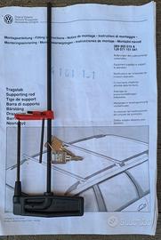 Vendo Barre Portatutto originali Volkswagen (p/n 3B9 860 019 A - 1J9 071 151 041) per Passat dal 98 in poi, Golf dal 99 in poi e Bora dal 99 in poi, con chiave di sicurezza, custodia , attrezzi e manuale per il montaggio. Le barre non sono mai state utilizzate e sono in ottimo stato.
