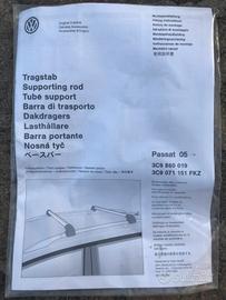 Barre porta tutto per VW Passat station wagon modello del 2007 acquistate ma mai aiutati con loro fodero porta barre chiavi guarnizioni e tutto l'occorrente per montarle