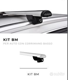 Vendo barre da tetto farad nere 110 mm complete di kit di fissaggio per auto con corrimano basso.