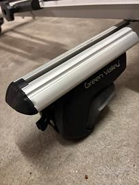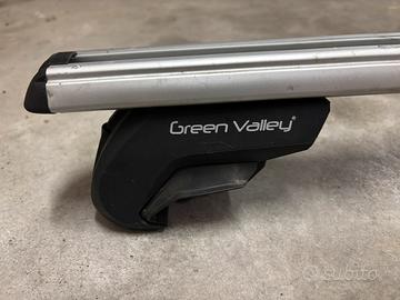 Vendo barre portatutto in alluminio marca Green Valley lunghezza 127 cm, complete di 2 chiavi. Adatte per auto con mancorrenti longitudinali sollevati. Portabici NON incluso..