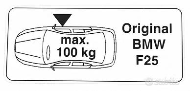 Vendo per BMW X3 F25 Barre longitudinali da tetto porta tutto usate sì e no 4/5 volte. Vedere foto per codici.