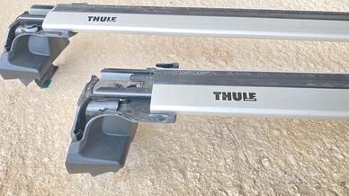 Barre Thule con suo gancio originale, Barre portatutto/portapacchi per auto Usate 2 volte,tenute e conservate con scrupolo. Prezzo trattabile