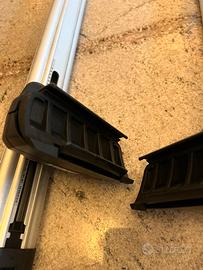 Barre Thule in alluminio complete di kit e piede d’appoggio per Audi, Hyundai, Kia ( 2015-2021 Hyundai Kia) e altre. Lunghezza barra 120 cm. 2 piedi d’appoggio e 3 kit intercambiabili per altre auto sia con mancorrenti integrati che sospesi. Possibilita di cambiare kit e piede d’appoggio per usarle su altre auto. Predisposte al carico di portasci portabici bauli canoe ecc.