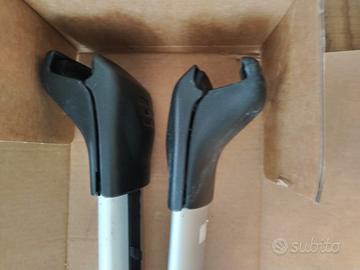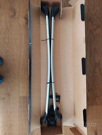 Barre portatutto per VOLVO V90 o auto con corrimano o ralling sul tetto sono come nuove presentano un solo problema in 2 tappi di chiusura della copertura si sono rotti col freddo e la stessa va chiusa con delle fascette o vanno acquistati i pezzi di ricambio in THULE