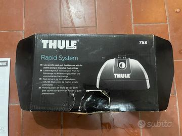 Il Thule Rapid System 753 piedi per sistema barre portatutto è una confezione contenente 4 pezzi, con antifurto. Si tratta della versione ribassata del piede universale e si addatta a veicoli con punti fissi e a quelli con barre lungitudinali integrate.