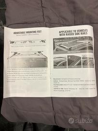 Barre portatutto portapacchi universali Vevor nuove mai usate! Comprate per errore non compatibili con la mia autovettura in quanto necessitano di barre laterali di serie "raised rail" come in foto nelle istruzioni. Prezzo non trattabile in quanto veramente mai usate.