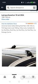 barre per auto con attacco rail 100-130 per montare portapacchi- portabici tende ecc ecc comprate a Luglio 24- perfette. cambio perché la nuova auto non ha questo tipo di attacco