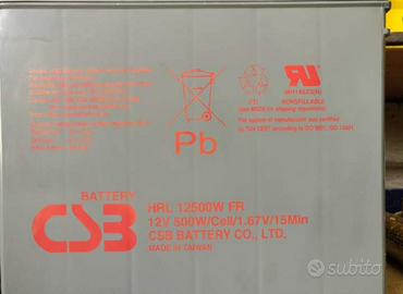 Vendo batterie al piombo in tecnologia AGM CSB HRL 12500W FR, ideali per impianti CarAudio, avviamento, mantenimento, gruppi UPS, Fotovoltaico ecc... Batterie pari al nuovo, sia esteticamente che elettricamente, come possono dimostrare le foto dei test dello spunto.