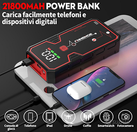 🚗 【Grande capacità】FNNEMGE Avviamento per auto con 21800mAh Dotato di una POTENTE corrente di picco di 4000A, può avviare facilmente veicoli a 12V (Motori Fino a 8,0L Benzina/ 6,5L Diesell). Adatto per auto, camion, motociclette, moto d'acqua, tosaerba, yacht, pick-up, motoslitte, ecc.
