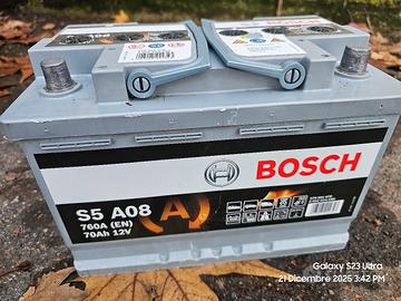 Batteria auto BOSH 70 Ah 760 A Start e Stop tipo AGM , usata un anno e mezzo , perfettamente funzionante . In foto ci sono anchele misurazioni del SOH ( stato di salute 100% ) e SOC ( stato di carica 98% ) che indicano che la batteria e' ben conservata , preferibile vendita in zona di persona .