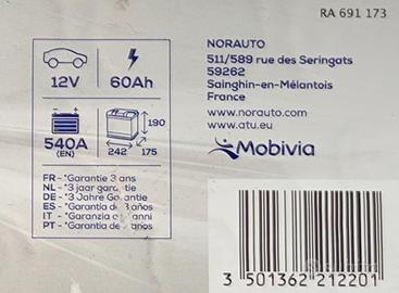 -Vendo batteria Norauto 12V 60Ah 540A -Ancora in garanzia ( 2 anni di garanzia)
