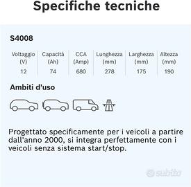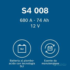 Bosch 0092S40080 Batteria Avviamento, 17,5 x 19 x 27,8 cm S4 008 74Ah-680A 12V Lunghezza [mm]: 278 Larghezza [mm]: 175 Altezza [mm]: 190 Disposizione polare: DX Stile: universale