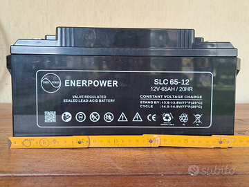 Batteria ermetica sigillata AGM VRLA 12V 65Ah Long Life Enerpower SLC 65-12. Batteria per gruppi di continuità (UPS), telecomunicazioni, luci di emergenza, antifurto, allarmi, fotovoltaico, servizi di bordo, camper e nautica.