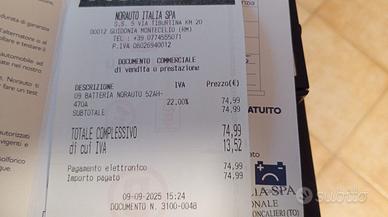 Vendi batteria pari al nuovo aventi le misure descritte in foto, e compresa la garanzia di 3 anni da settembre 2025, non spedisco per ovvie ragioni di peso, sono disponibile per altre informazioni, grazie Batteria Norauto usata 6 mesi perché ho rottamato la vettura. Era su una panda 3°serie. Le dimensioni sono riportate in foto, come anche lo scontrino e la data, sono disponibile per altre informazioni. Non spedisco per ovvie ragioni. Grazie